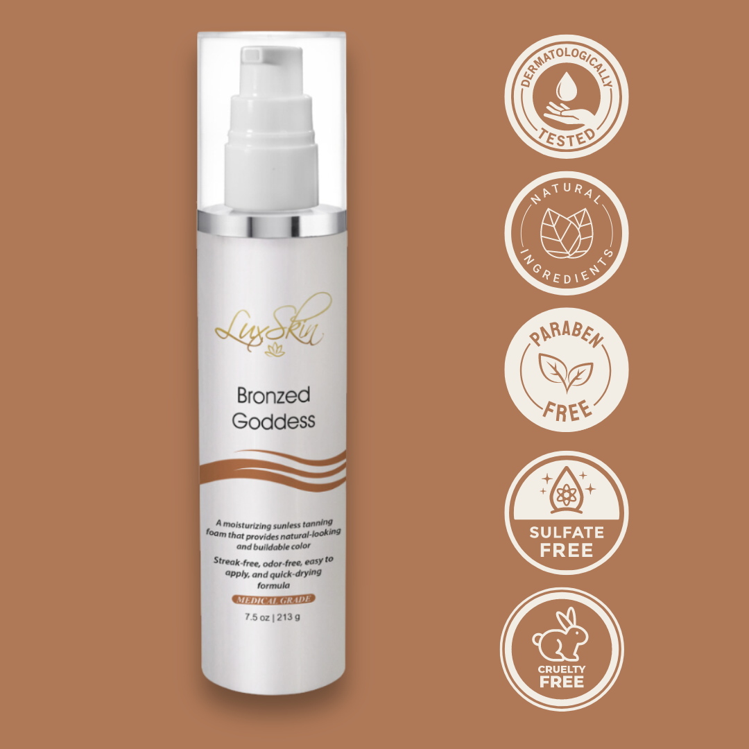 Achieve a radiant, sun-kissed glow with Bronzed Goddess, an innovative sunless tanning foam that provides a streak-free, natural-looking tan. This buildable formula develops quickly, delivering a healthy tan without the harmful effects of UV exposure. Enriched with a specialized sugar extract for hydration and a blend of botanical ingredients, Bronzed Goddess offers a sun-safe tan while restoring moisture and fighting signs of aging. Experience a beautiful tan with a lightweight, non-sticky formula that’s easy to apply and dries quickly.
