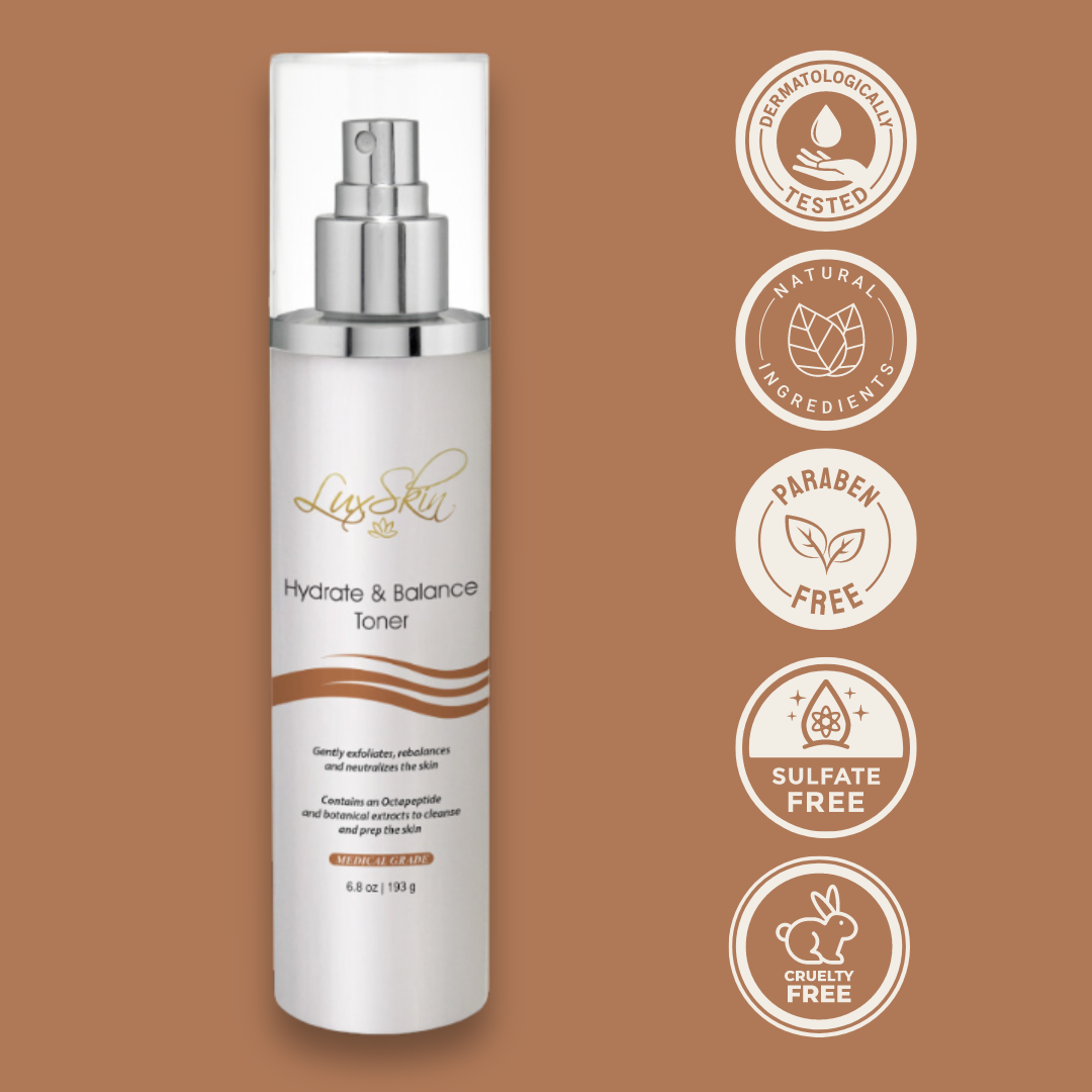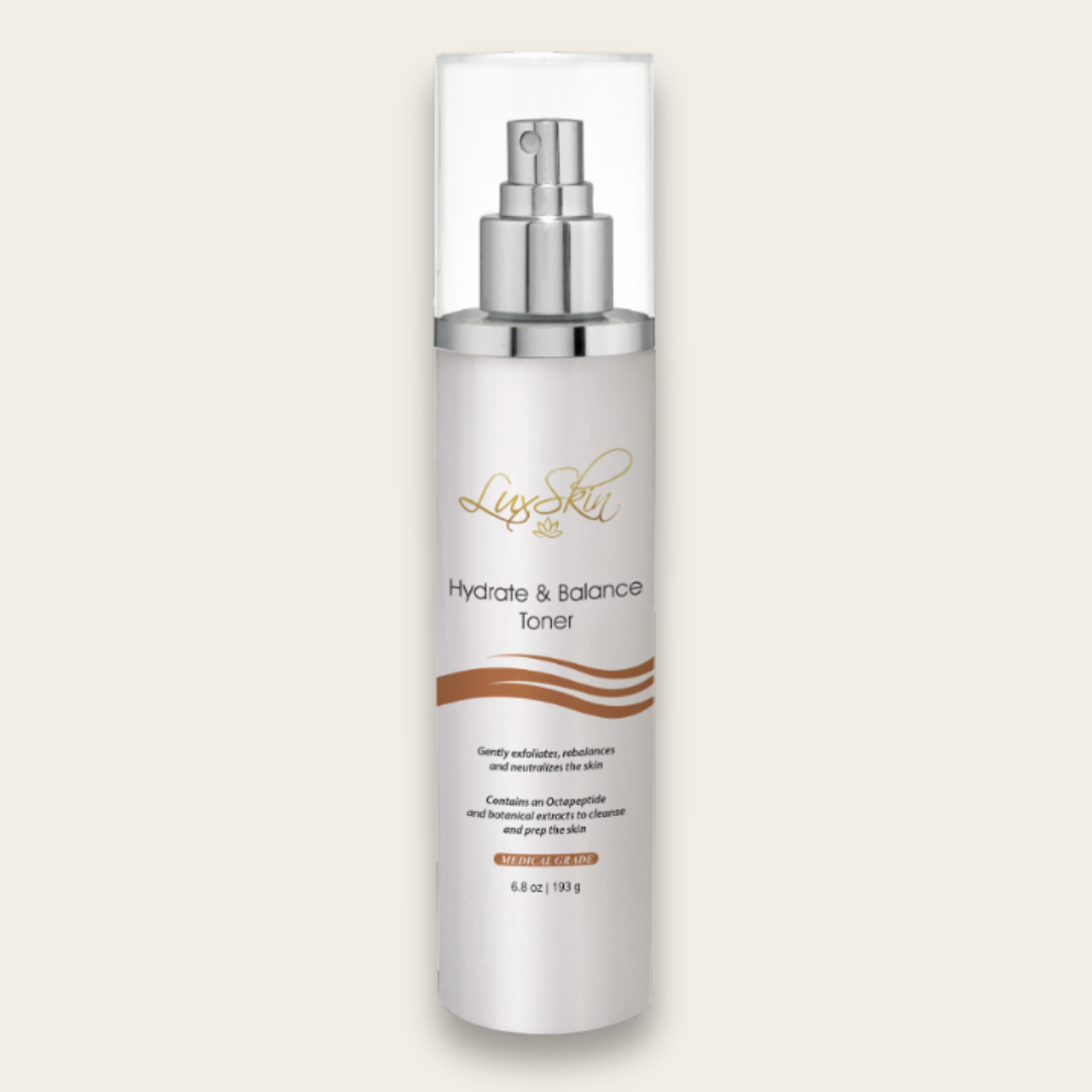 Hydrate & Balance Toner is a gentle, botanically rich formula designed to cleanse, clear, and prepare your skin. Enriched with an Octapeptide complex and fortified with a Trans-Epidermal Carrier, this pH-balanced toner eliminates excess dirt, oil, and makeup while enhancing your skin’s natural moisture retention. Its peptide complex helps to improve the appearance of fine lines and wrinkles caused by repetitive facial expressions, while botanical oils and extracts hydrate, soothe, and protect with antioxidants. Enjoy a soft, smooth complexion and optimal preparation for moisturization or further treatments.