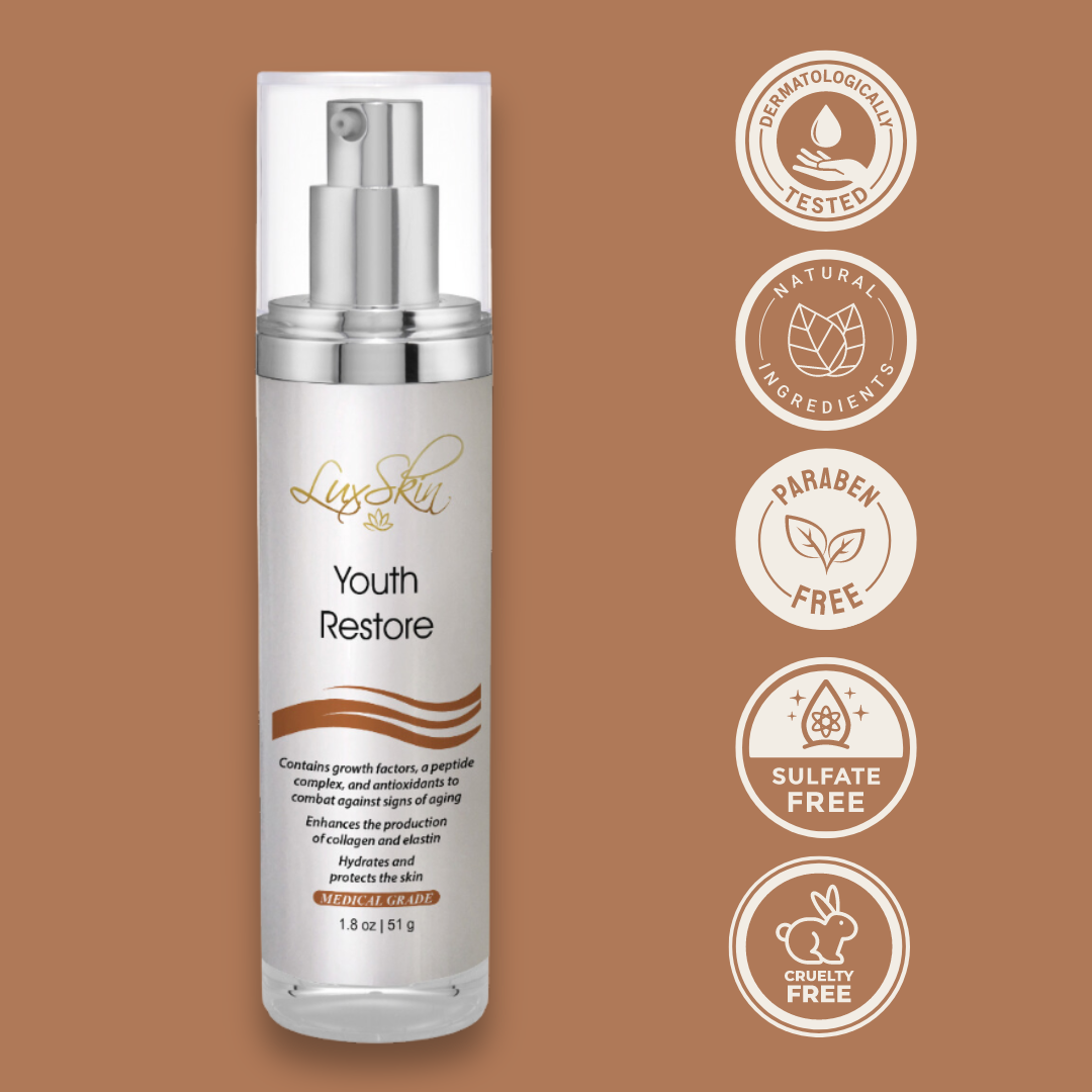 Elevate your skincare routine with Youth Restore, a revolutionary formula designed to combat signs of aging and rejuvenate your skin. Infused with human growth factors, a peptide complex, antioxidants, and essential skin-restorative ingredients, this advanced treatment enhances collagen and elastin production while replenishing vital fatty acids. The result is a softer, smoother complexion with restored youthful vitality.